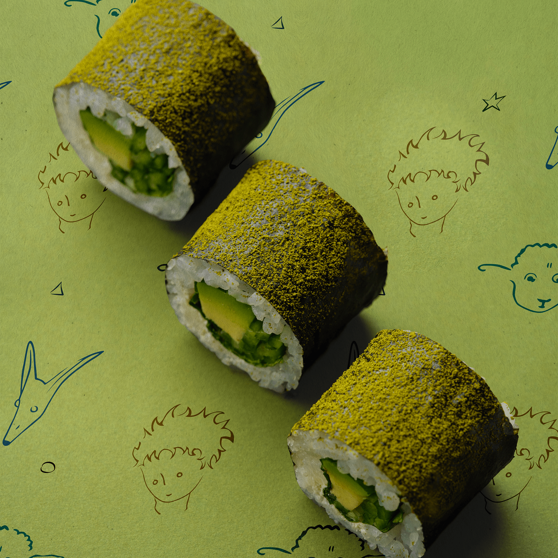 Mit seinem grünen Matcha-Mantel erinnert dieser Maki an das ikonische Outfit des Kleinen Prinzen®.